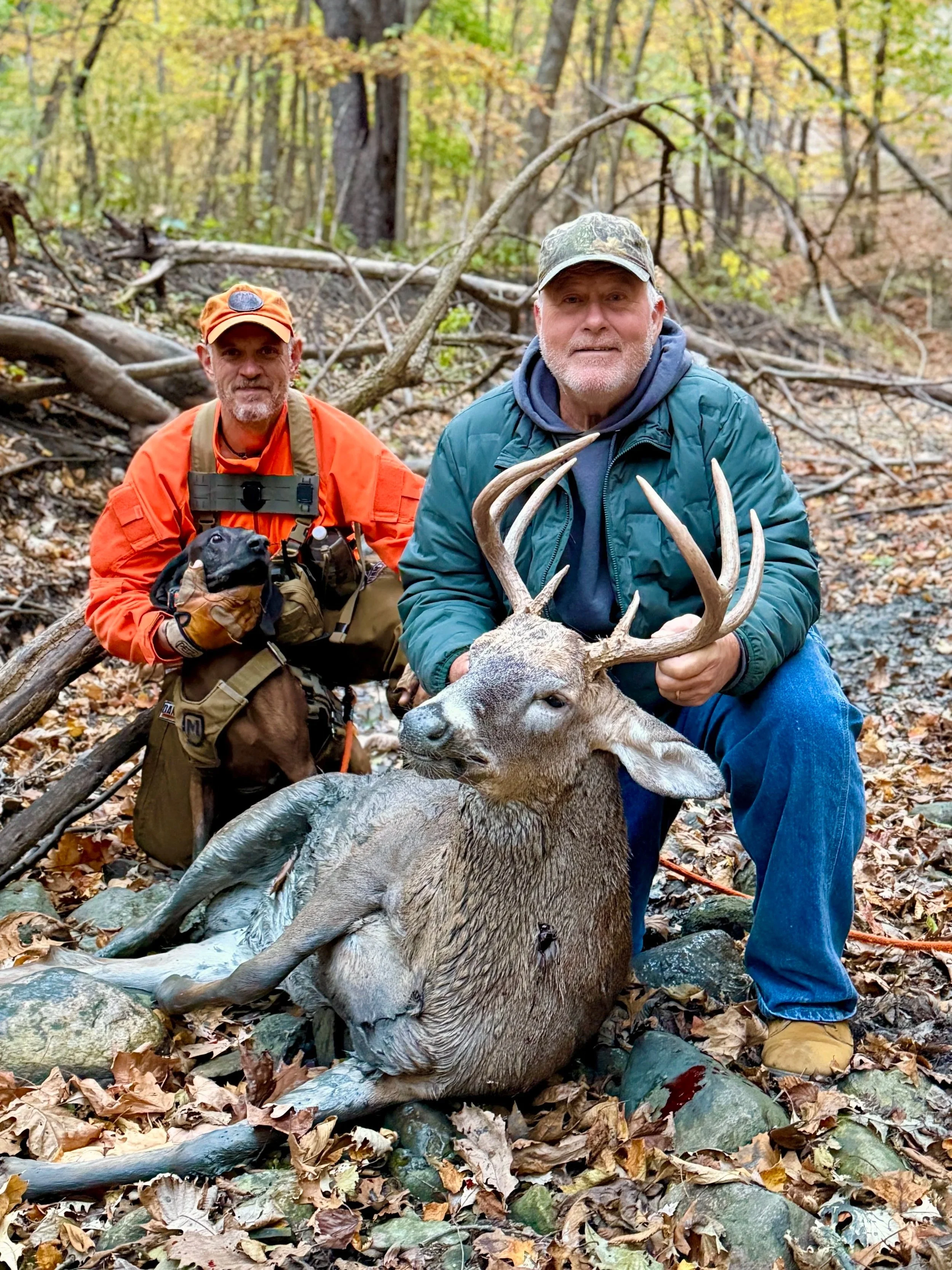 Denny arrowed this buck around 5:00pm. The hunting party quickly ran out of blood that night and decided to come back in the morning. We were called after they couldn’t advance the line any further.
